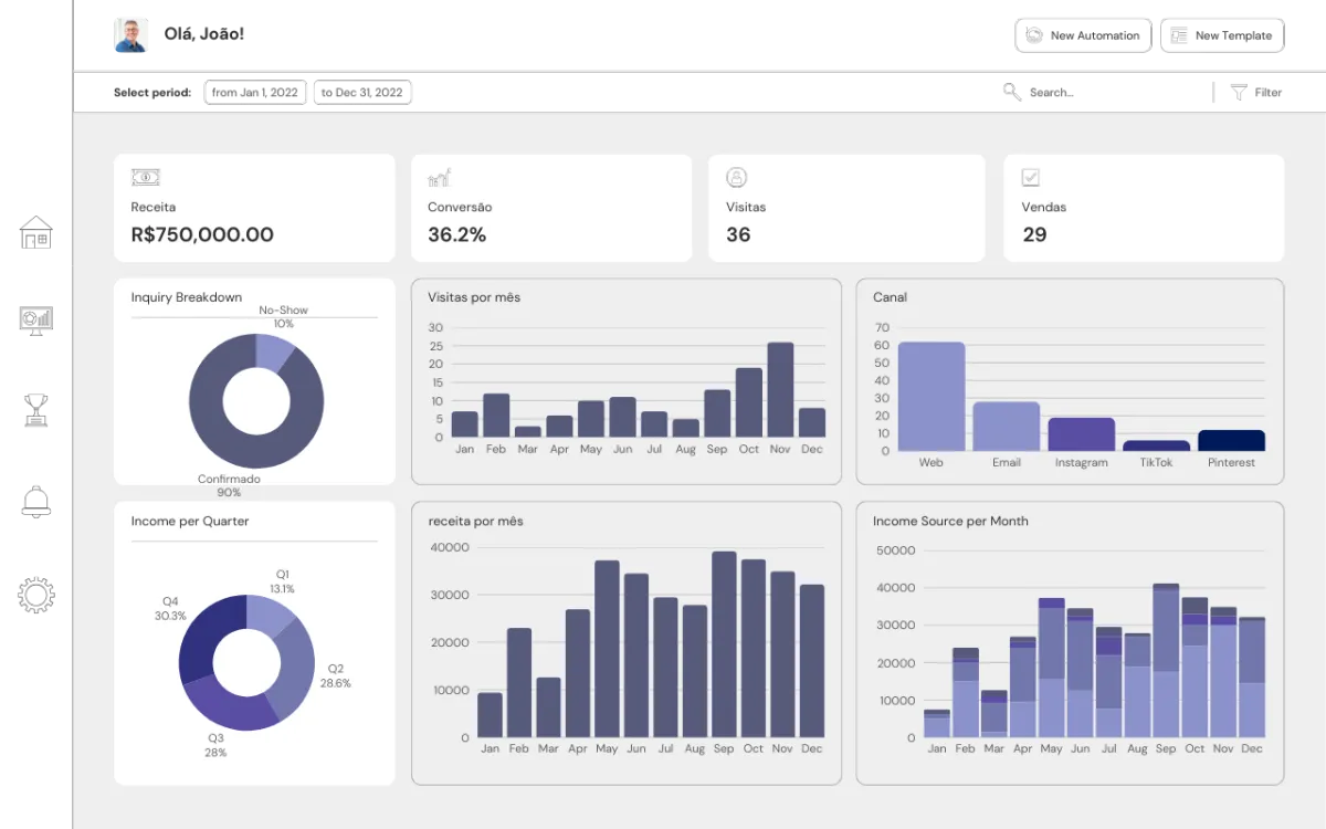 Visão clara do funil e do retorno: saiba quais canais trazem resultado e como cada vendedor está performando.